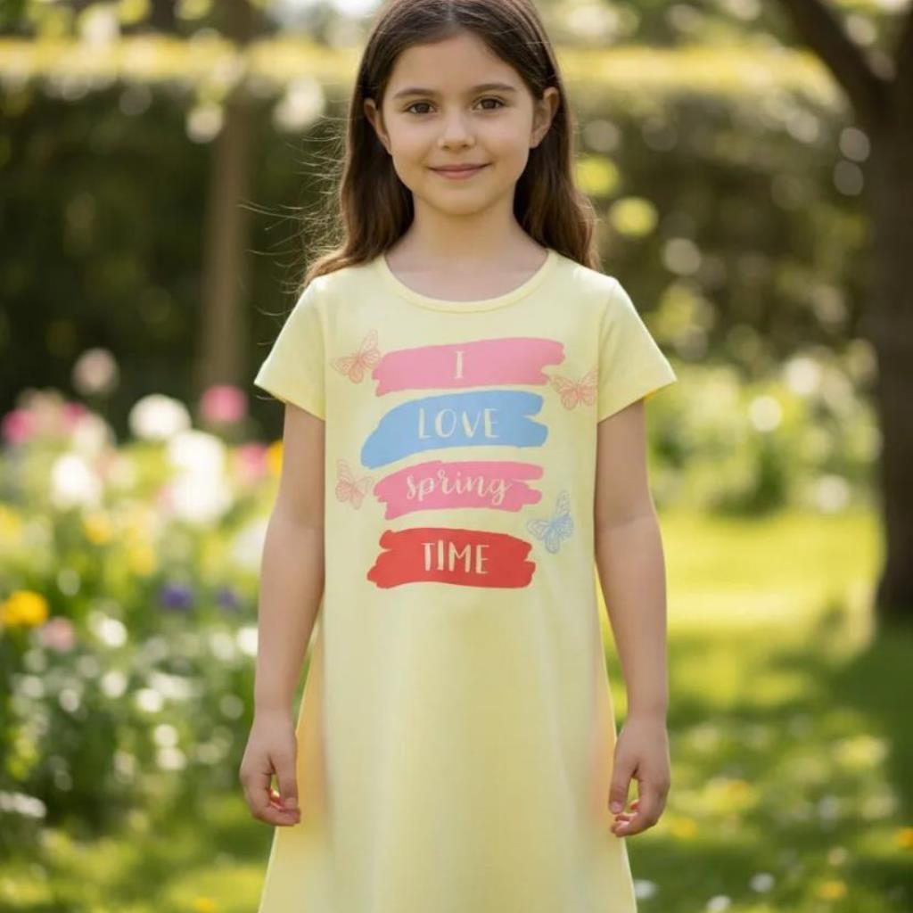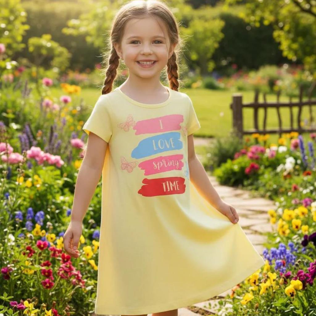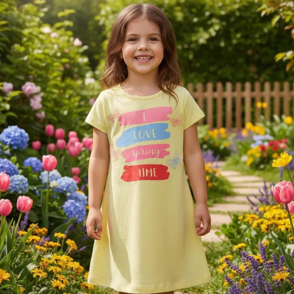 VESTIDO INFANTIL COSTURA RETA BE FUN I LOVE SPRING TAMANHO 8