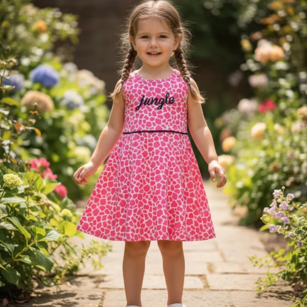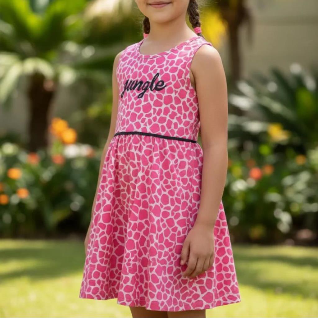VESTIDO INFANTIL DUDUKA ANIMAL PRINT JUNGLE TAMANHO 3 ROSA